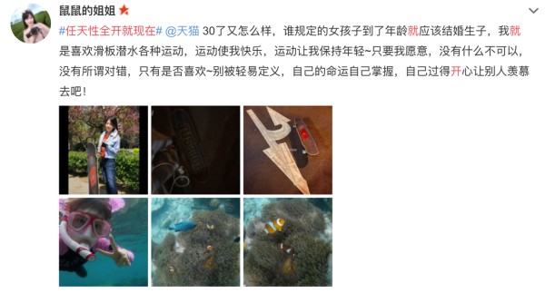 在这样的号召和感染之下,用户被这些具有共鸣感的言论和态度所吸引,自发参与到活动中。再有源源不断的用户被吸引,用文本、视频来表达自己的天性以及所思所想,形成了更加优质的UGC内容,深度触达更多的受众。