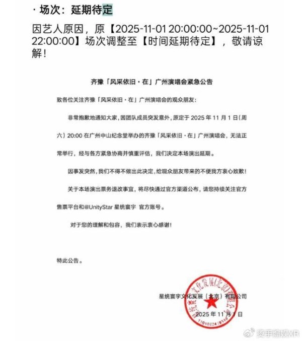 先前周华健在台北小巨蛋开唱时,曾特别介绍自己的音乐总监就是屠颖,两人好交情不在话下;另他最近也跟着齐豫巡演,今早他还在社交软件发文,岂料晚间传出离世噩耗,齐豫演出也紧急宣布延期。