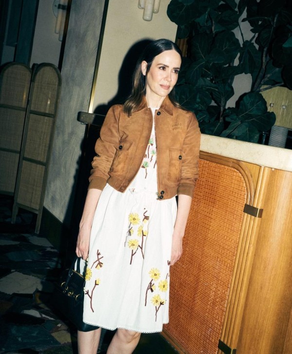 好莱坞的明星们则是这场大秀的“时尚经典范本”。Emma Corrin的出现,就像是一场复古电影的开场,她那优雅的气质和精致的造型,完美诠释了Miu Miu对复古与现代融合的设计理念。而香蕉姐Sarah Paulson更是以她那独特的穿搭风格,为这场大秀增添了几分艺术气息,她的每一次转身都像是在讲述一个关于时尚的故事,让人忍不住想要一探究竟。