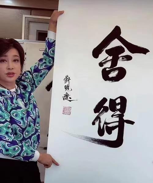 刘晓庆的书法作品,一般篇幅只有几个字,抒发对人生的感悟和看法,内容是蛮积极的。下图是她的作品《舍得》。