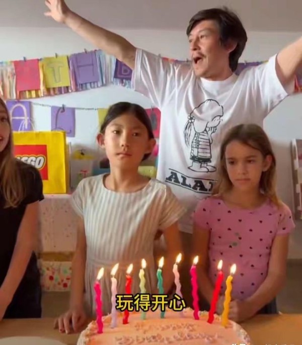 陈冠希为7岁女儿办生日派对,女儿高挑可爱,陈冠希秦舒培显沧桑