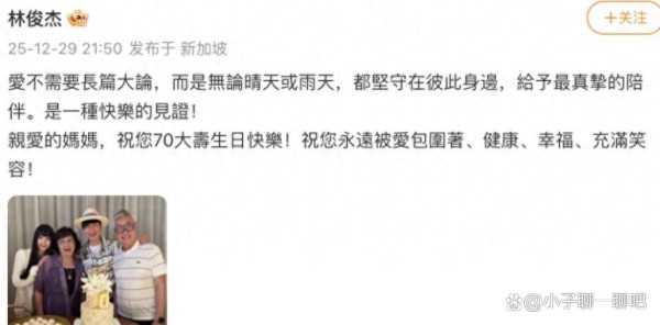 从“地下恋”到“高调官宣”,林俊杰的案例折射出明星情感管理的进化。某艺人经纪公司高管透露:“现在明星公开恋情更讲究‘时机管理’。林俊杰选择在母亲寿宴官宣,既符合‘孝顺’人设,又通过‘全家福’形式降低争议性。”这种策略在张艺兴公开恋情、鹿晗关晓彤官宣时都曾验证有效。而七七的“非典型网红”身份,则巧妙避开了“攀附明星”的负面标签,其家族企业的背景更增添了“强强联合”的正当性。
