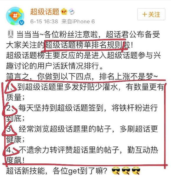 那么现在小宣简单的来说一下超级话题排名上升的关键吧【签到,多发优质微博,多浏览,多多转评赞互动】