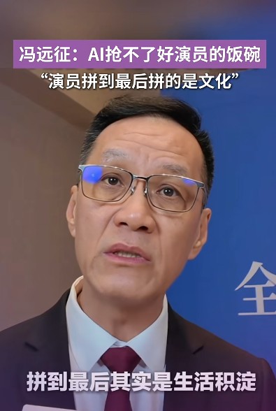 作为资深实力派演员,冯远征也被问及AI问题:“AI人的眼泪是画出来的,只是一个画符,但我的眼泪是从身体里流淌出来的,有温度、有味道。”在冯远征看来,AI可以快速生成大纲、提供辅助,但写不出真正有个性的台词,演不出有血有肉的人物。而演员的核心竞争力是“文化”和“内功”,是对于生活的积淀。