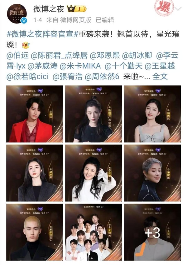 微博之夜盛事,十波阵容官宣!来看嘉宾名单,有你喜欢的吗?