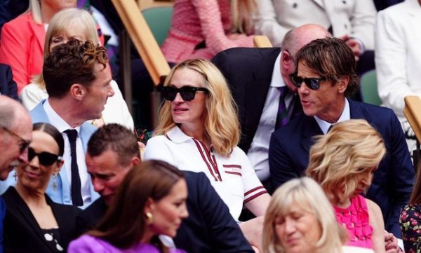 接下来让我们转向好莱坞明星阵营。抖森和他的未婚妻扎薇在球场上的甜蜜亮相,无疑成为了这次温网的一大亮点。抖森一身蓝色西装,尽显绅士风范,而扎薇那件低胸碎花连衣裙,更是将她丰满的身材展现得淋漓尽致。两人在看台上的亲吻瞬间点燃了现场的气氛。但细心的观众或许会发现,扎薇的眼神中似乎带着一丝不安。作为一个非白人演员,她在好莱坞的道路并不平坦,这个甜蜜的吻,是否也带着一丝对未来的焦虑?另一对璧人卷福和他的爱妻索菲,在色彩上的搭配更是完美无缺,仿佛连穿衣都有着默契。然而,真正引起轰动的却是坐在他们左右的阿汤哥和朱莉娅·罗伯茨。62岁的阿汤哥似乎有些发福,看起来有些油腻,这是年纪的烙印,还是生活的压力?要知道,他最近的新片《碟中谍7》虽然票房不错,但口碑却不如以往。而56岁的朱莉娅·罗伯茨则状态极佳,笑容依旧迷人。她最近主演的新剧《Gaslit》获得了不错的反响,似乎又一次证明了自己的实力。这些好莱坞明星的出现,不仅为温网增添了几分星光,更让我们看到了名利场中的人生百态。光鲜亮丽的背后,每个人都有自己的故事和挣扎。