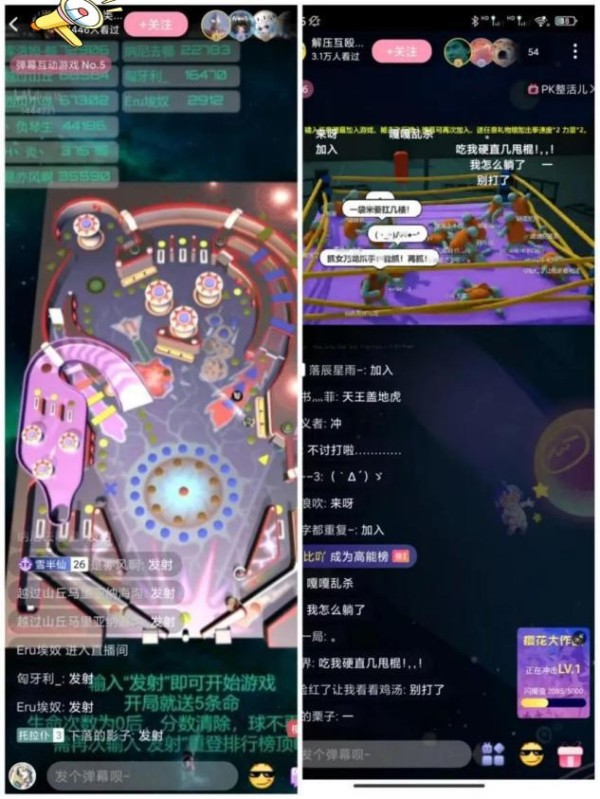目前的话钭这种弹幕游戏直播有官方的,也有不是官方的。不是官方的目前称之为“野游”,平台目前已经针对野游进行封杀,并且推出自家玩法,所以有了官方玩法直播的出现,而且注意一点,官方只开放权限给机构,也就是“公会”,目前需要进入公会才能开放授权,个人是无法参与这类直播的。