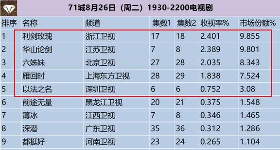 《以美之名》跌至第二,电视剧收视率排行榜,第一收视高达2.374%