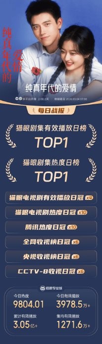 《纯真年代的爱情》以“青春版《父母爱情》”的定位开创了年代剧年轻化表达的新路径:央视八套吸引中老年怀旧受众,腾讯视频依托轻喜元素与明星CP打入年轻市场,双平台协同形成“合家欢”效应。其台网双爆成绩证明,在古装、悬疑题材扎堆的春节档,质朴情感与时代共鸣仍具强大号召力。陈飞宇作为00后演员首次扛住央八黄金档,以收视破3%的实绩为新生代正名;而剧集对“实用主义与浪漫主义共生”的主题挖掘,则为同类创作提供新思路。