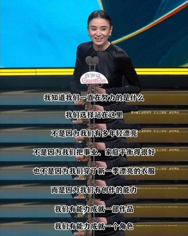 关于职场女性,她说:“我们站在这里,不是因为年轻漂亮,不是因为平衡了事业家庭,也不是因为穿了新一季的漂亮衣服——而是因为,我们有创作能力!”