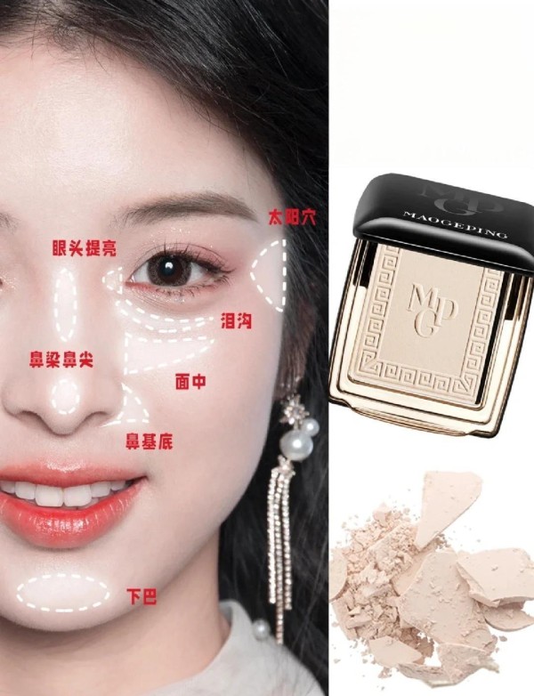 修容应该聚焦T区:鼻梁轻扫阴影强化立体度,双C线提亮缩短中庭。针对低折叠度脸型,需要通过明暗结构调整来增强面部立体感。高光点位的选择很关键,在鼻基底、眉骨等位置提亮可以破解凹陷感。