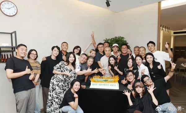 《生万物》举行庆功宴,杨幂站c位合影,迟蓬与林永健同框不显老