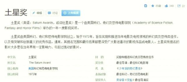 土星奖,由美国科幻、奇幻和恐怖电影学院于1972年创立,旨在表彰和推动电影及电视领域的科幻、奇幻和恐怖佳作,以及具有创新意义的优秀作品。该奖项的提名范围广泛,通常涵盖广大影迷喜爱的影视作品或电影人,因此被誉为美国最具影响力的商业奖项之一。值得一提的是,土星奖所提名的影片往往在当年具有显著影响力,甚至引发社会轰动。