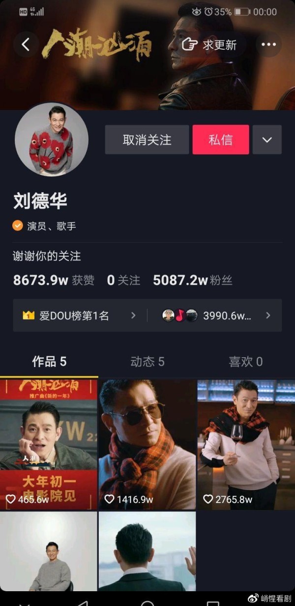 天王刘德华在中国是家喻户晓无人不知,其出道至今四十年,从主演第一部电影起至今都是艺坛巨星,而且越老越帅,越老越红!前几天刘德华上抖音成了各大媒体各大平台的头条热门新闻!第一天就涨粉2500万,三天七十二小时涨粉4800万!可以说是前无古人后无来者!央视和各省市媒体都为之点赞!更可贵是很多警察同志留言居然是看了刘德华电影才加入警察队伍的!可以想象刘德华对中国人影响之深远!刘德华不仅人长得帅气,而且人品一流,其成就在国内更是无人可及!刘德华1994年就成立了香港刘德华慈善基金会,以帮助老幼病残!1998年中国洪灾,2008年汶川地震,2010年云南旱灾,刘德华都是香港演艺界捐款主要发起人,2010起连续两届选为中国残疾人基金会副理长!2020年为武汉捐款捐物两千多万!从艺四十年主演了近一百六十部电影。演唱会五百多场,一千多万人次观看。录制唱片一百多张,演唱录制歌曲近一千四百首,获奖六七百次,在2000年其被世界吉尼斯纪录评为获奖最多的歌手!1999年被人民日报评为中国最有影响力人物之一(演艺界唯一入选人),同年因为连续三年在韩国击败迈克杰克逊被迈克杰克逊亲自邀请去韩国参加慈善演唱会!2000年被评为世界十大杰出青年!2005年被中国百年电影选为百年电影形象大使!