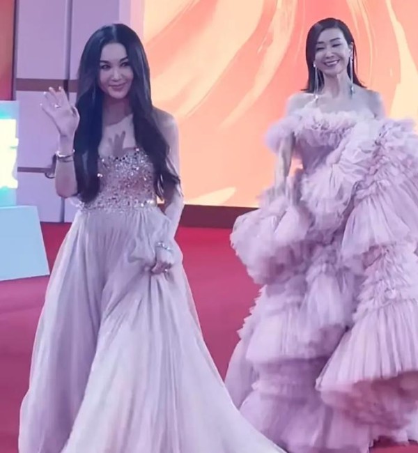 红毯上最引人注目的应该就是温碧霞和伍咏薇这“两位粉色仙女”了。而且,给她俩凑一起,还真挺尬的。温碧霞穿了一袭梦幻粉色的公主裙,与她同框的另一位演员是火遍全网的“新妲己”——娜然。虽然她现年58岁,很多粉丝依然感慨,这位“逆龄女王”依然气质出众,虽然颜值打了点折扣,但相比她的年纪,状态已经相当不错了,“冻龄女神”名头没白叫。