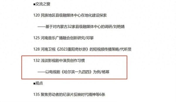 《浅谈影视剧中演员创作习惯——以电视剧〈哈尔滨一九四四〉为例》——日前,在《中国广播电视学刊》今年第6期中,一篇署名“杨幂”的文章引发关注。随后,该刊主办单位中国广播电视社会组织联合会向媒体证实,这篇文章的作者确实为演员杨幂。《中国广播电视学刊》是CSSCI扩展版、北大中文核心刊物。很快,“杨幂发论文”便成为社交网络的热搜词条。