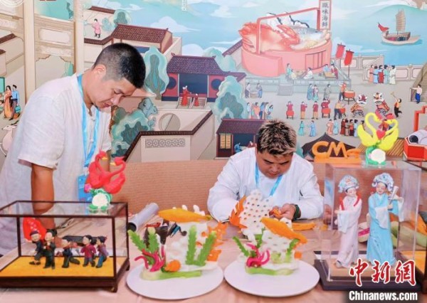 10月19日,第二十一届中国中华老字号精品博览会在浙江温州举办。图为展会现场展出的非遗米塑技艺。