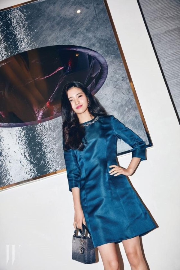 金泰梨和优雅的代名词迪奥品牌非常适合,深蓝色的连衣裙和迪奥代表性的包包简直完美契合,看过这身装扮的人无一不赞叹她的优雅和知性的魅力。
