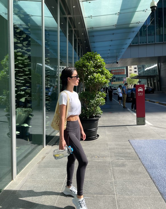 同日,杨采钰还晒出了一组健身照片。照片中,杨采钰化着淡妆,戴着墨镜,身着运动服饰,手提着大型运动水壶,俨然一副健身达人的样子。