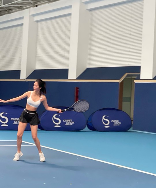 杨采钰喜欢的运动类型很多样,比如打网球。5月20日,杨采钰在社交平台询问网友打球时如何表情管理,并晒出自己一组打球时的照片。杨采钰穿着运动内衣和黑色短裙,腿部肌肉线条清晰可见,全身上下都毫无赘肉,身材健美。