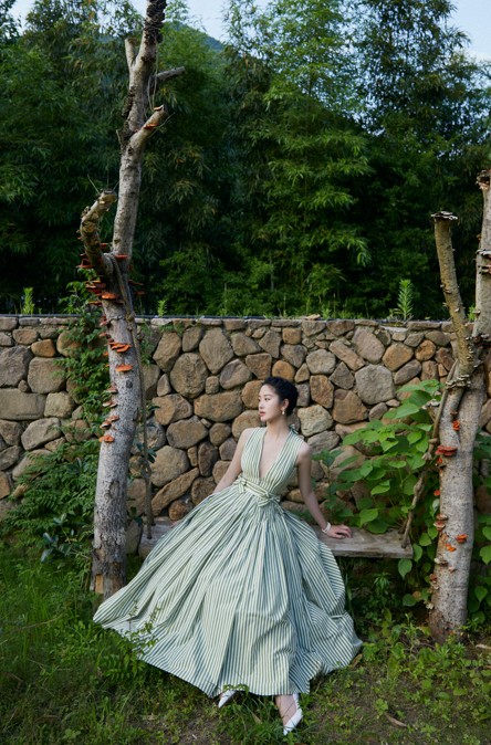 生活中如此自律的杨采钰在造型上有了更多的可能性,是个行走的衣服架子,可以驾驭多种风格的服装。不久前,杨采钰尝试了一件条纹阔摆裙,整体上看优雅庄重,而深V的设计又平添了几分性感,完美展现了女人的风情。