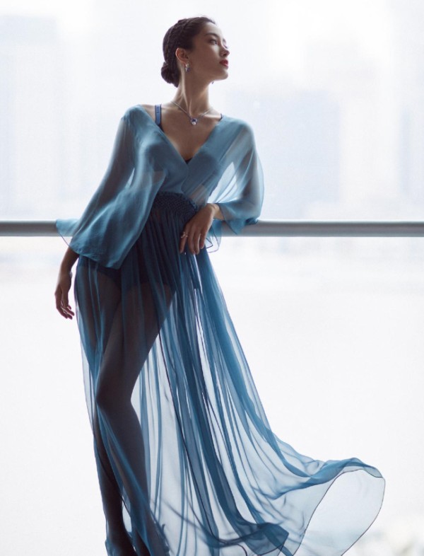 杨采钰的穿衣风格很多变。在一次活动中,杨采钰就大胆挑战了一件蓝色透视纱裙,展现了一双又细又直的美腿,整体上有种若隐若现的美感,妩媚动人。