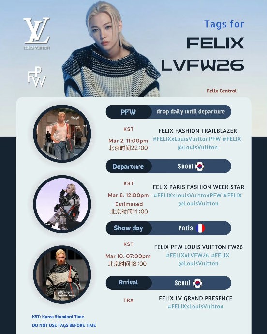 全智贤以灰蓝夹克+牛仔裤的松弛感造型启程,李龙馥(Felix)作为十次出席LV秀场的亚洲面孔获粉丝高调应援。