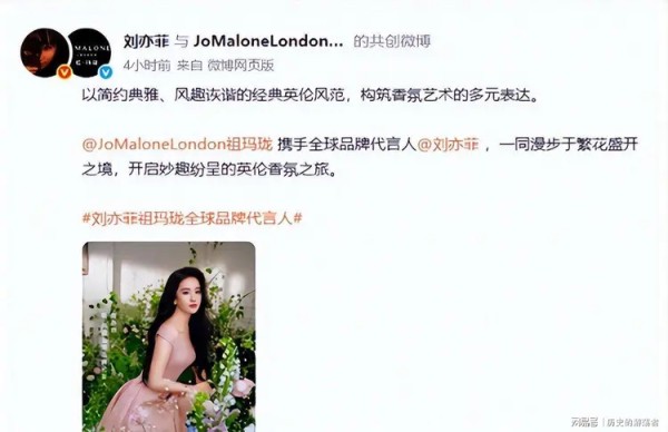 近日,刘亦菲突然官宣了新代言,一个英国的顶奢香氛品牌,宣布刘女士成为了他们的全球代言人。
