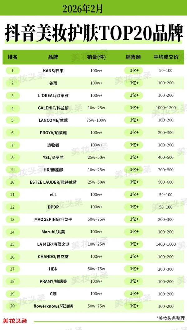 超头降温、官媒登场,2月29个美妆品牌月销破亿!