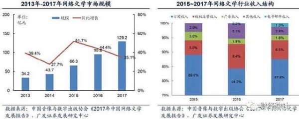 2017年中国网络文学市场规模129亿元,同比增长35.1%,盗版网络文学市场仍具有较大规模,据阅文招股书和和Frost&Sullivan数据,2016年盗版网文内容的收入损失约为正版市场收入的2倍以上,广发证券认为,随着付费习惯形成和版权监管趋严,逐步回归正版市场。