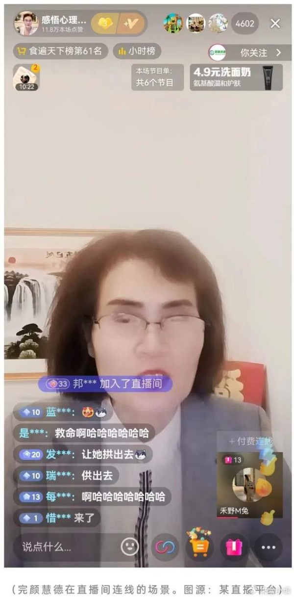 除此以外,完颜慧德的言论也是其走红的关键因素。笔者曾经听过几次完颜慧德的直播,其实三观挺正,不过一些观点就是家长辈所共有的,一些网友在被家长辈的各种言论训斥后,很容易向这个“各方面很像家长”的老人身上发泄不满。尤其在谈论到婚恋问题时,完颜慧德会坚决支持结婚,并且说“人的使命就是传承生命”之类的,与现在网络上主流的不婚主义背道而驰,很容易遭到年轻人的反击。而这种有来有回的争论,更能提升直播间的人气。