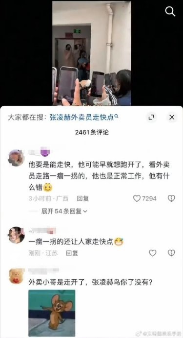 张凌赫路透下车时前面有外卖员,现场拍摄的粉丝直接喊话“大哥 走快点”引发网友热议,你怎么看?#张凌赫道歉#