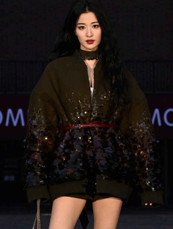 她在巴黎时装周的造型堪称教科书级别:黑色斜裁长裙质感高级,腰侧至露背的红橙刺绣精致夺目,不刻意露肤却尽显风情,完美诠释了东方美学“美而不艳”的含蓄韵味。