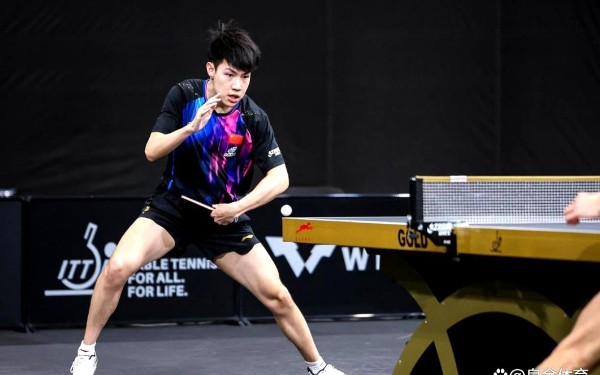 他站在球台前,深吸一口气,然后发了两个球,对手全都没接好,直接得分!
