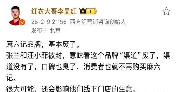 品牌和创始人适度切割这事 娱乐圈早有成功案例 某火锅品牌创始人离婚撕成那样 门店照样排长队 说到底消费者要的是产品 不是连续剧门票 麻六记要是再这么捆绑下去 恐怕真要应了网友那句话——本是美食潜力股 偏做八卦工具人 这届吃瓜群众可精着呢 情怀牌打多了 迟早得凉