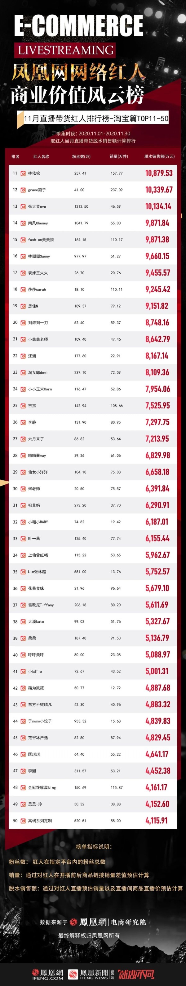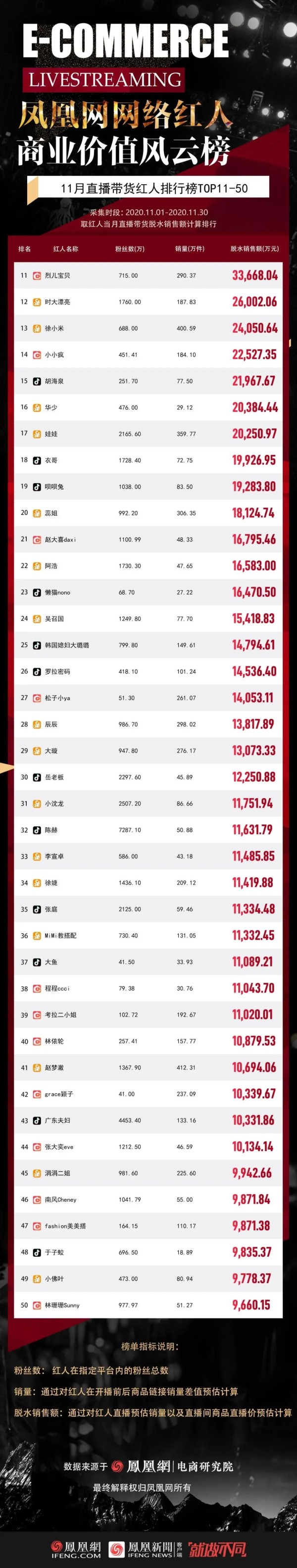 11月带货GMV排行榜-总榜TOP11-50