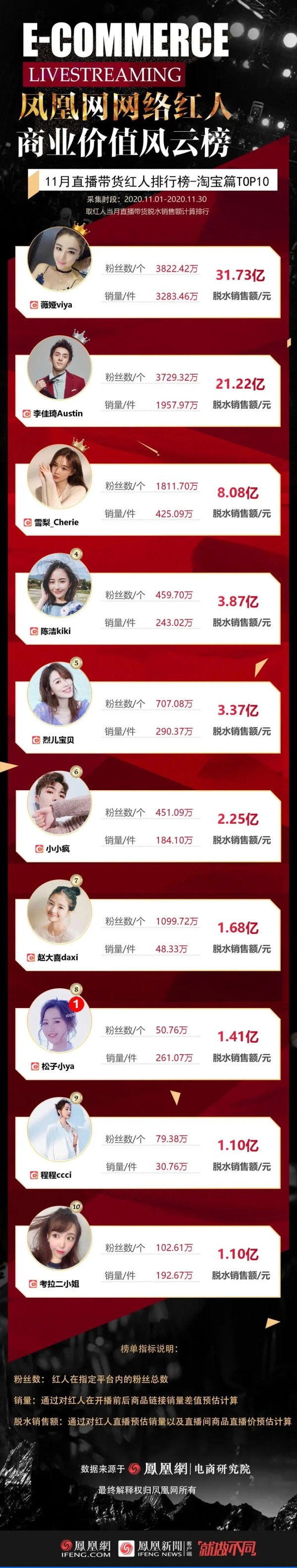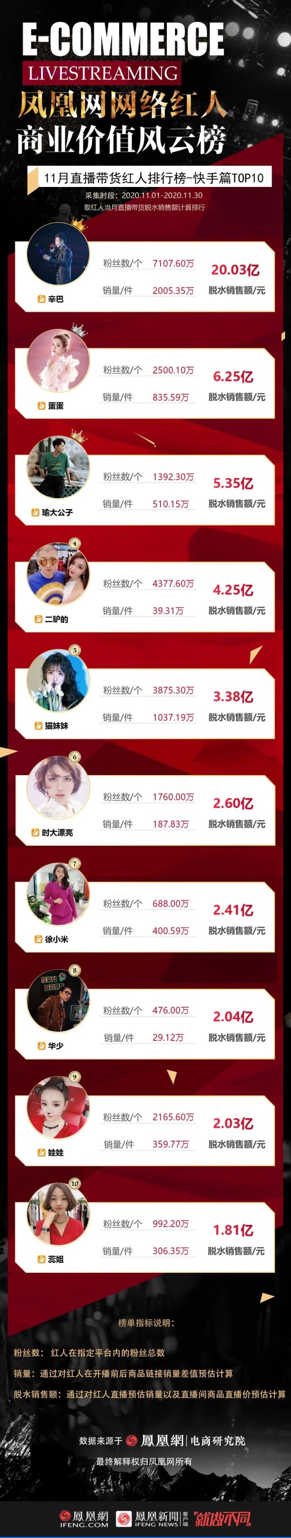 11月红人带货脱水榜单出炉:抖音明星带货GMV反超淘宝