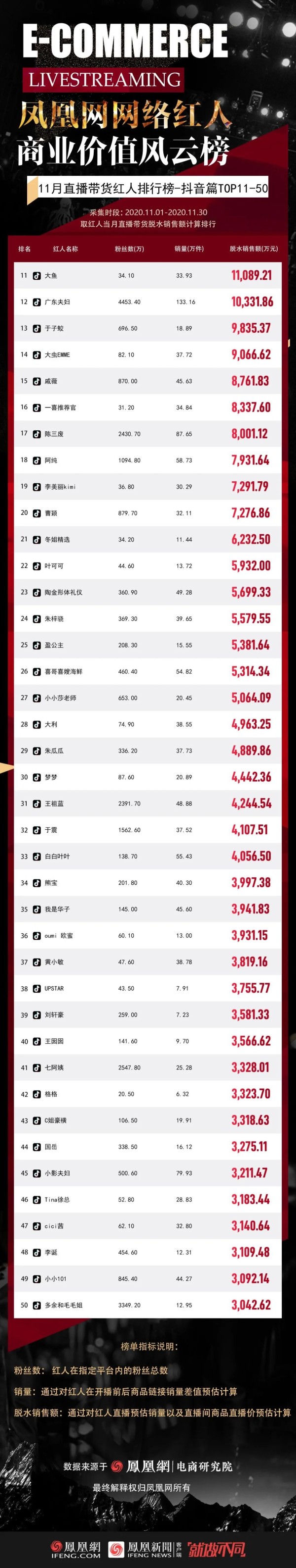 11月带货GMV排行榜-抖音篇TOP11-50