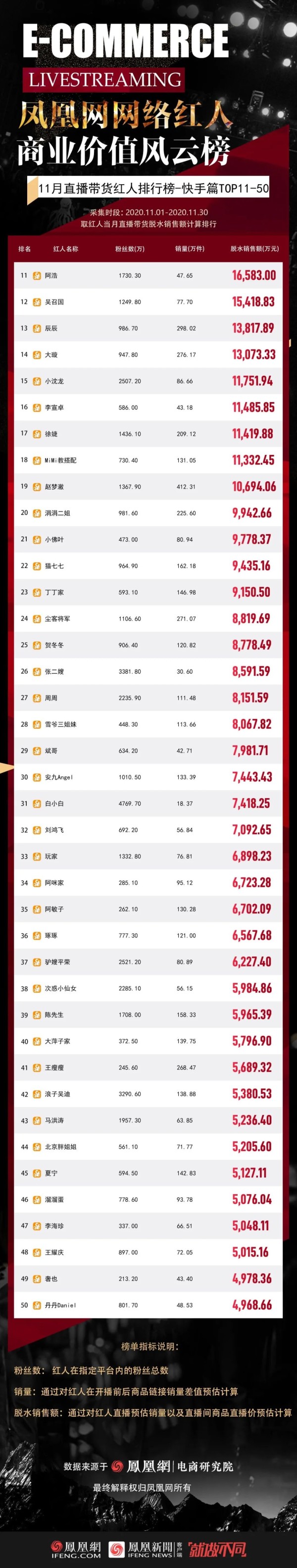 11月带货GMV排行榜-快手篇TOP11-50