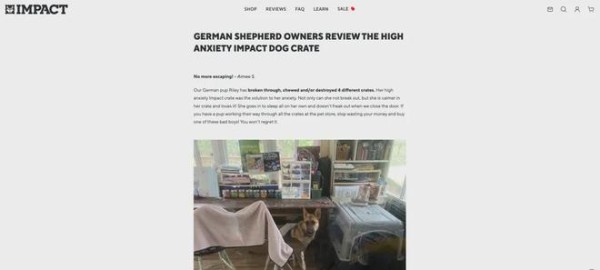 以其热门文章 "The Best Dog Crate for Shepherds" 为例,品牌通过对德国牧羊犬等高爆发力犬种的习性拆解,自然地引入产品的结构优势。