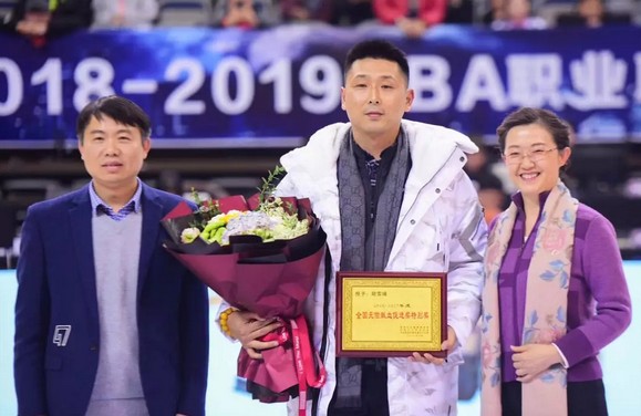 江苏男篮传奇球星,现任江苏篮管中心副主任、南京市红十字无偿献血形象大使胡雪峰来到了赛场,从南京市红十字会秘书长李俭和南京红十字血液中心主任陆小军手中接过奖牌和鲜花--他荣获了“2016-2017年度全国无偿献血促进奖特别奖”。