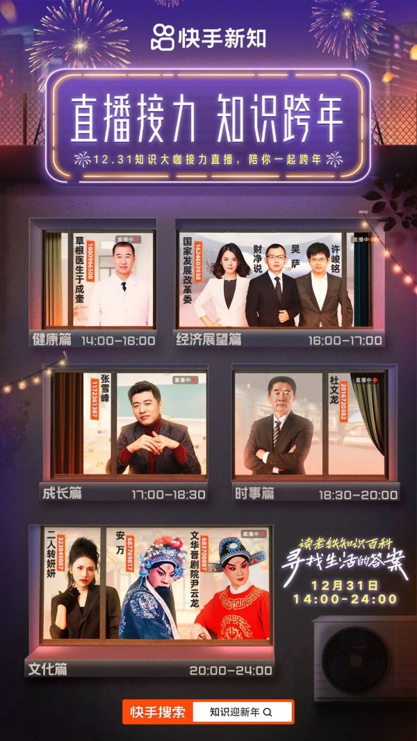 而快手平台今年的跨年节目也走上“知识赛道”。