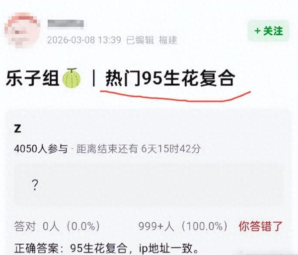 3 月 8 日这天,本该是女神们收礼物的好日子,结果内娱直接扔出一颗深水炸弹,把所有注意力都吸走了,某社交平台突然冒出一条猛料,说 " 热门 95 生花复合了 ",关键线索就这几个字字 —— IP 地址一模一样!
