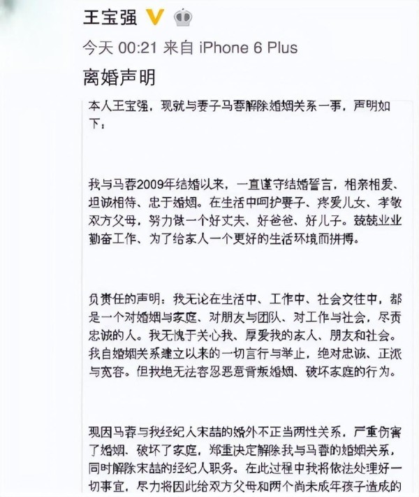 还记得那个引爆社交媒体的深夜吗?2016年8月14日凌晨,王宝强在微博上发表的那则离婚声明,如同一颗投入平静湖面的巨石,激起了千层浪。声明中直指妻子马蓉与经纪人宋喆存在“婚外不正当关系”,让一场原本私密的婚姻危机演变为全民围观的热点事件。