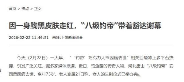 其实每次名人去世,总能掀起一轮回忆杀,有人心疼“时代的背影”,也有人只当茶余饭后八卦谈资,不过翻开这几位的履历表,你会发现,不管是江湖气满满的“八级钓帝”,还是学界泰斗、舞台老将、医学宗师,他们都活成了各自领域的狠角色,只是结局无一例外,都被命运按下了暂停键。