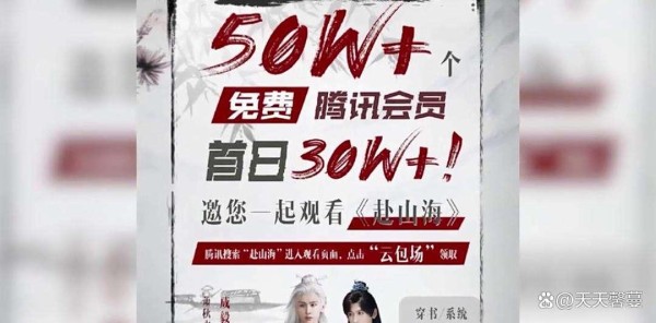 播出在即,粉丝们还在平台花了1500万,送出了50多万个《赴山海》的云包场,直接打破历史记录。