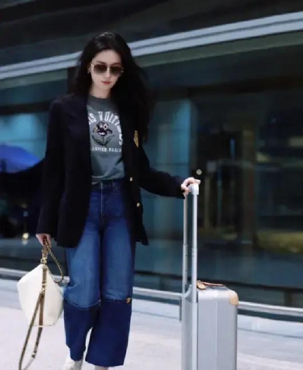 刘亦菲作为路易威登全球代言人,这次自然没缺席。她的出发照就已经在网上刷屏,虽然穿的是黑西装外套配灰印花T恤、牛仔七分裤,看上去随意,却因为气质和脸,不管怎么配都能成“高级感”。墨镜遮住了大半,露出来的部分依旧让人移不动眼,波浪卷发在光下泛着柔亮的色泽,让人有点期待她在秀场的正式造型。而且这次事件还有个细节,路易威登百年企划只有她一个华人代言人参与,含金量不低。