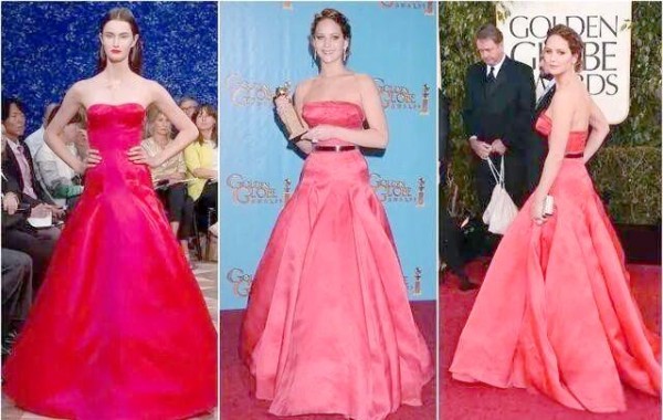 穿着CD的詹妮弗·劳伦斯,2013年金球奖的耀眼之星。那件CD肩带礼服,原本已足够惊艳,而詹妮弗·劳伦斯巧妙地加入了一条黑色腰带,更是锦上添花,劳伦斯用巧妙的搭配,将CD肩带礼服的独特美感发挥得淋漓尽致,彰显出她的独特品味。