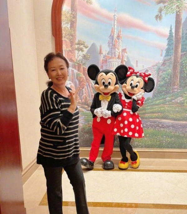 母亲脱下外衣和米老鼠合影,老人家还在镜头前凹造型,心态超年轻!
