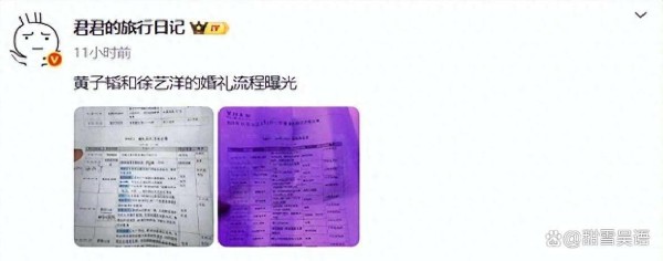 黄子韬和徐艺洋要结婚了。这事本来挺喜庆,结果网上流出个婚礼流程,大家一好家伙,直接傻眼。